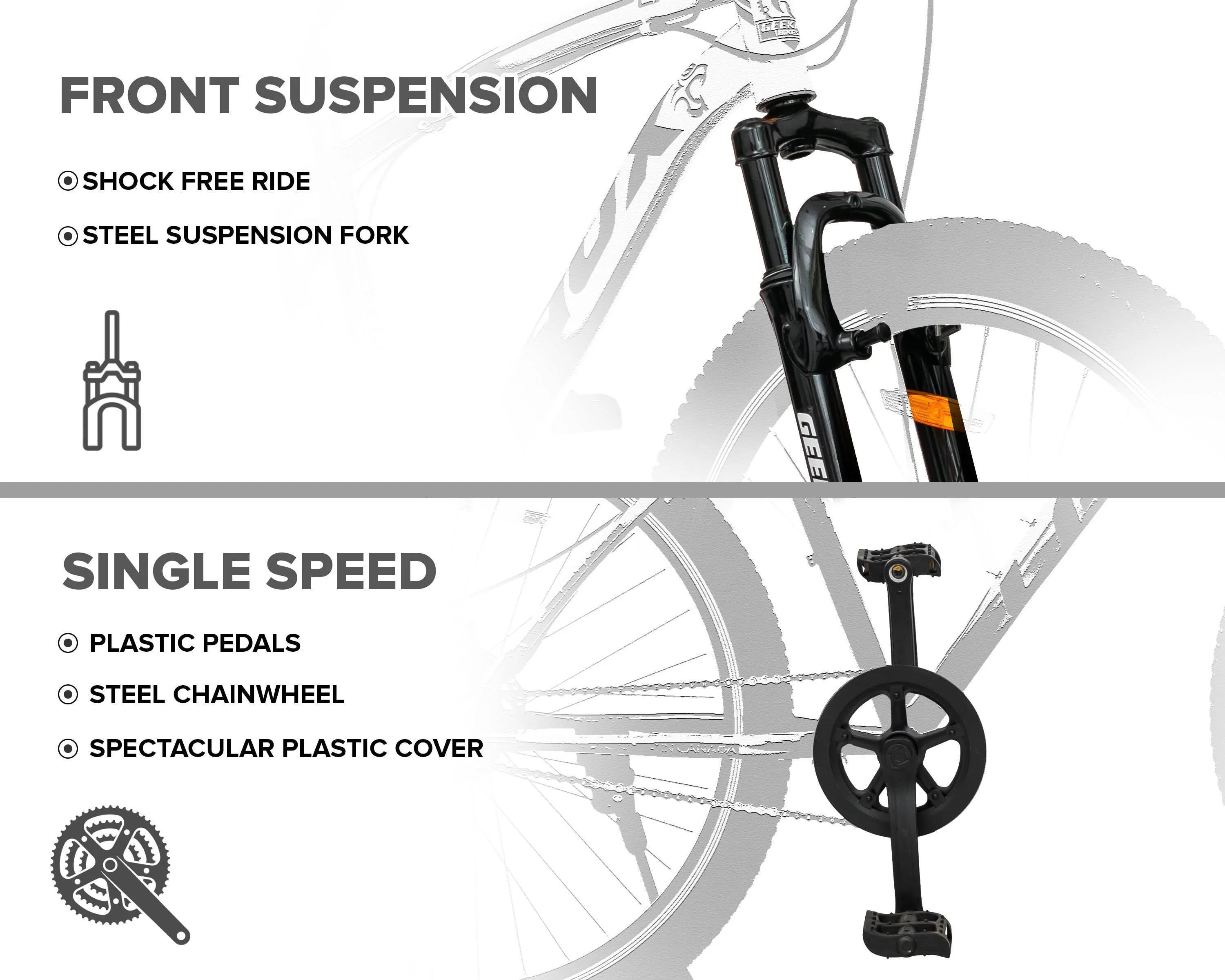 Built for riders seeking an ultra-low-maintenance, long-lasting bike, the Geekay Laux is the perfect bike for commuting, touring or any ride. Tough steel frame and mechanical disc brakes are meant to last through thick and thin. When it comes to gearing, our Dual Disc Brakes offer coasting capabilities so that you can glide on down with ease!